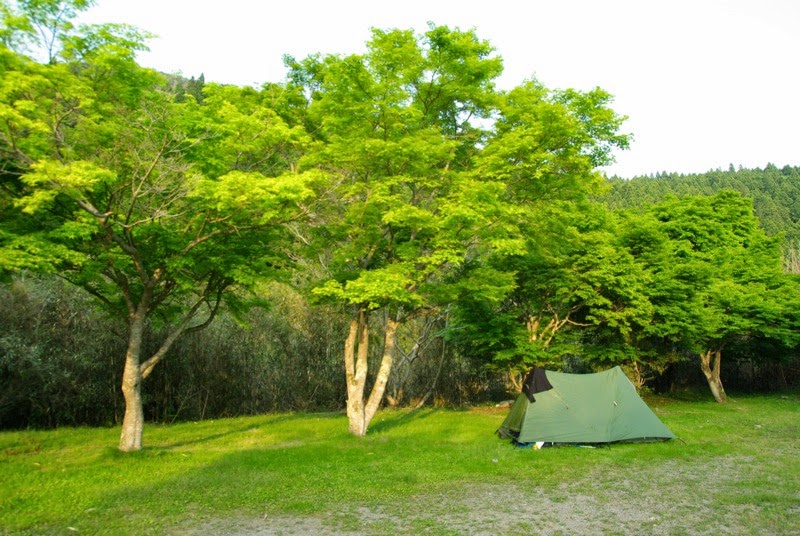 | Avant-dernier jour : Koguchi. Le camping est fermé, ou alors n'accueille personne le lundi, enfin on n'a pas très bien compris. Bref on doit trouver un autre endroit pour poser la tente. |